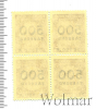 Квартблок почтовых марок 200 руб на 15 коп. Надпечатка пятиконечной звезды и нового номинала. РСФСР
