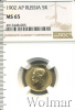 246 5 рублей 1902 АР Au MS 66 654VVS 27 24 966 Закрыто