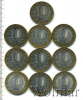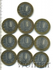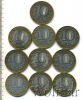 Подборка юбилейных 10 рублей, 10 шт