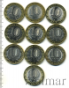 Подборка юбилейных 10 рублей, 9 шт