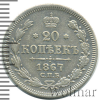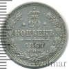 944 20 копеек 1867 СПБ НI Ag XF- Оникер 140 683 Закрыто
