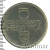 3044 5 франков. Швейцария 1989 Cu-Ni UNC sanfic 29 536 Закрыто
