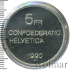 3045 5 франков. Швейцария 1990 Cu-Ni Proof (UNC) moz 55 381 Закрыто