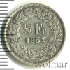 2556 1/2 франка. Швейцария 1952 Ag XF Schura67 47 198 Закрыто