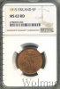 1726 5 пенни. Финляндия 1915 Cu MS 63 RD SpirtMan 23 4 702 Закрыто