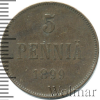 1806 5 пенни. Финляндия 1899 Cu XF+/AU Siniy Borod 28 466 Закрыто