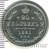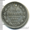 101 20 копеек. Отверстие 1861 СПБ Ag XF alexnau 17 142 Закрыто
