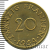2059 20 франков. Саарленд. Германия 1954 Br XF AGamolsky 29 278 Закрыто