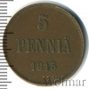 1341 5 пенни. Финляндия 1915 Cu AU liperator 21 292 Закрыто