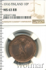 1357 1 пенни. Финляндия 1916 Cu MS 64 RB kindrkin 19 1 943 Закрыто