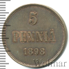 1329 5 пенни. Финляндия 1898 Cu AU/UNC Bergedelweiss 30 7 380 Закрыто