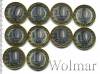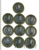 Подборка юбилейных 10 рублей. Регионы России, 12 шт