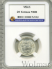 3933 20 копеек 1928 Ag MS 63 Monstrikulis 17 44 907 Закрыто