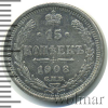 593 15 копеек 1908 СПБ ЭБ Ag UNC kanzchler 25 3 336 Закрыто