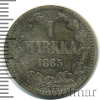 818 1 марка. Финляндия 1865 S Ag XF- Artex 45 776 Закрыто