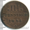2145 3 пфеннинга. Германия. Мекленбург-Стрелиц 1855 А Cu AU gonsaless 34 3 695 Закрыто