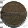 2146 3 пфеннинга. Германия. Мекленбург-Стрелиц 1862 Cu AU Nikolaz 27 1 826 Закрыто