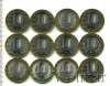 Подборка юбилейных 10 рублей. Регионы России, 12 шт