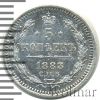 736 5 копеек 1883 СПБ ДС Ag AU lmns 26 13 793 Закрыто