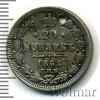 66 20 копеек. Отверстие 1863 СПБ АБ Ag XF ani 55 11 181 Закрыто