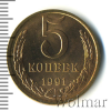 4134 5 копеек 1991 Л Cu-Zn UNC Sergeye 23 128 Закрыто