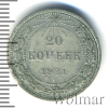 3653 20 копеек 1921 Ag VF WOLK 70 1 027 Закрыто