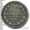 38 20 копеек 1869 СПБ НI Ag VF+ WOLK 36 335 Закрыто