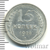 4075 15 копеек 1928 Ag UNC Sannyshka 39 201 Закрыто