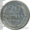 3567 20 копеек 1924 Ag AU GBB 15 410 Закрыто