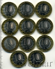 Подборка юбилейных 10 рублей. Регионы России, 11 шт