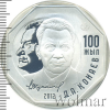 2378 100 тенге. Казахстан 1995 Ag PF (UNC) Latev 16 7 730 Закрыто