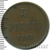 1291 5 пенни. Финляндия 1907 Cu XF Sotnikov 15 91 Закрыто