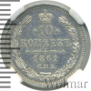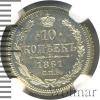 608 10 копеек 1861 СПБ ФБ Ag MS 63 Prezident 45 19 998 Закрыто