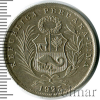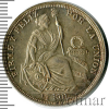 2443 1 соль. Перу 1865 Ag AU Evkus 21 5 386 Закрыто