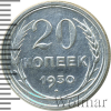 3325 20 копеек 1930 Ag UNC 96region 13 169 Закрыто