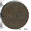 909 5 пенни. Финляндия 1916 Cu AU Wave 25 106 Закрыто