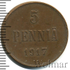 913 5 пенни. Финляндия 1917 Cu AU A5461 19 63 Закрыто
