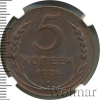 3433 5 копеек 1924 Cu MS 63 BN yrhikBober 37 51 094 Закрыто