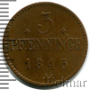 2196 3 пфеннинга. Германия. Мекленбург-Шверин 1846 Cu XF Prezident 35 663 Закрыто