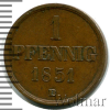 2203 1 пфеннинг. Германия. Германия Брауншвейг-Вольфенбюттель 1851 Cu XF SayAukoto 39 662 Закрыто