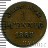 2207 1 пфеннинг. Германия. Реусс-Шлейц 1864 Cu UNC Lync 19 3 907 Закрыто
