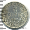 2221 1/4 рупии. Германская Восточная Африка 1910 J Ag AU aan 26 8 003 Закрыто
