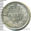 697 50 пенни. Финляндия 1917 S Ag UNC ауща 27 251 Закрыто