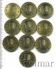 Подборка юбилейных 10 рублей, 10 шт