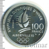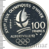 2476 100 франков. Франция. XVI зимние Олимпийские Игры, Альбервиль. Горнолыжный спорт 1989 Ag 22,2 PF (AU) Mystique 31 2 075 Закрыто