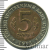 2627 5 рублей. Винторогий козел. Штемпельный блеск 1991 ЛМД биметалл AU Huckster 30 810 Закрыто