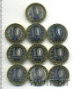 Подборка юбилейных 10 рублей, 10 шт