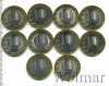 Подборка юбилейных 10 рублей. Регионы России, 11 шт