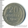 3415 20 копеек. Чеканный блеск 1924 Ag XF pereshekan 29 153 Закрыто