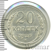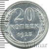 3425 20 копеек 1925 Ag AU/UNC Rector 21 136 Закрыто